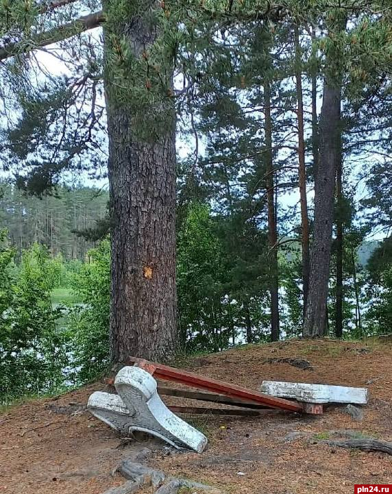 Лавки на берегу озера Песчаное в Стругокрасненском округе сломали неизвестные, сообщил глава округа Александр Волков в своем Telegram-канале.