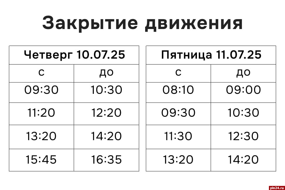 Через реку Черная на участке км 54+300 дороги Псков – Гдов – Сланцы – Кингисепп – Куземкино – Краколье вводится временное ограничение движения транспорта с 10 по 11 июля, сообщили Псковской Ленте Новостей в министерстве транспорта и дорожного хозяйства Псковской области.