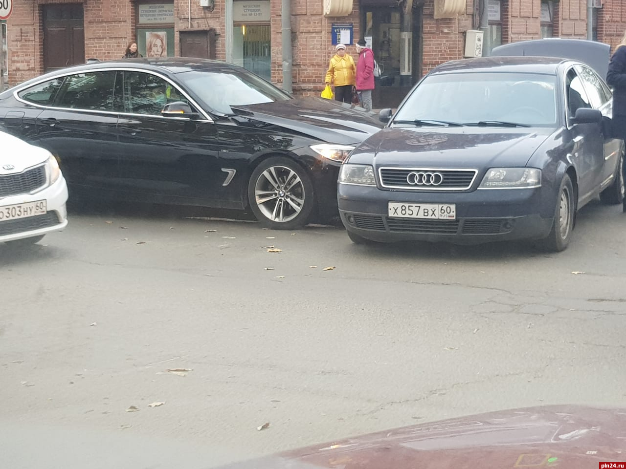 «БМВ» и «Ауди» столкнулись на Октябрьском проспекте в Пскове, на пересечении с улицей Некрасова. Как сообщает корреспондент Псковской Ленты Новостей, на место происшествия прибыли сотрудники ДПС, скорая помощь и МЧС.