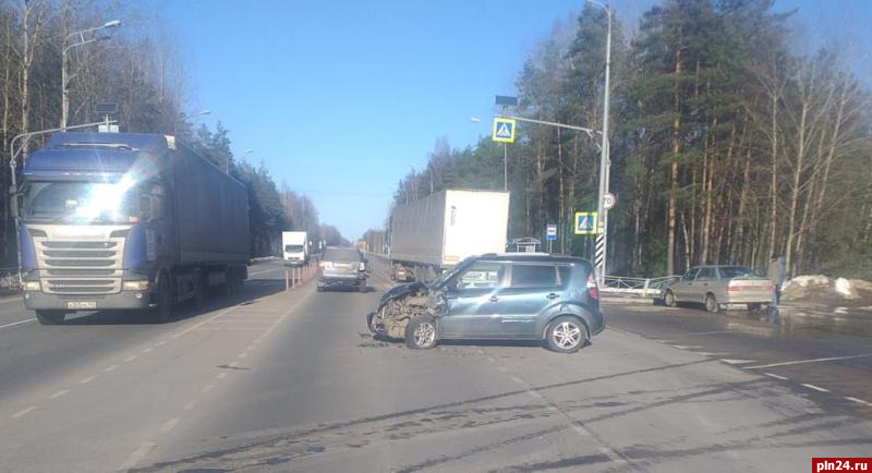 ДТП произошло на кольце площади Победы в Пскове. ВИДЕО