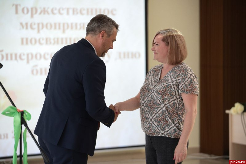 В свою очередь заместитель председателя регионального комитета по культуре Владимир Куприн прочитал приветственный адрес от первого заместителя губернатора Псковской области Веры Емельяновой. Она пожелала библиотекарям вдохновения, надежных партнеров-издателей и читателей. «В этой аудитории собрались люди, вовлеченные в профессию. Во все времена библиотеки выполняли важную просветительскую миссию. Модернизированные в рамках нацпроекта "Культура" библиотеки региона становятся востребованными публичными пространствами. Несмотря на внедрение в нашу жизнь информационных технологий, "живая" книга остается бесценным кладезем информации. Позвольте выразить вам глубокую признательность за стремление сохранить и приумножить интеллектуальный потенциал Псковской области», – говорилось в нем.