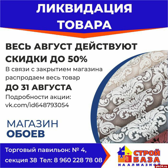 Магазин обоев в связи с закрытием проводит глобальную ликвидацию товара. До конца августа для всех покупателей будут действовать скидки до 50%. В ассортименте: