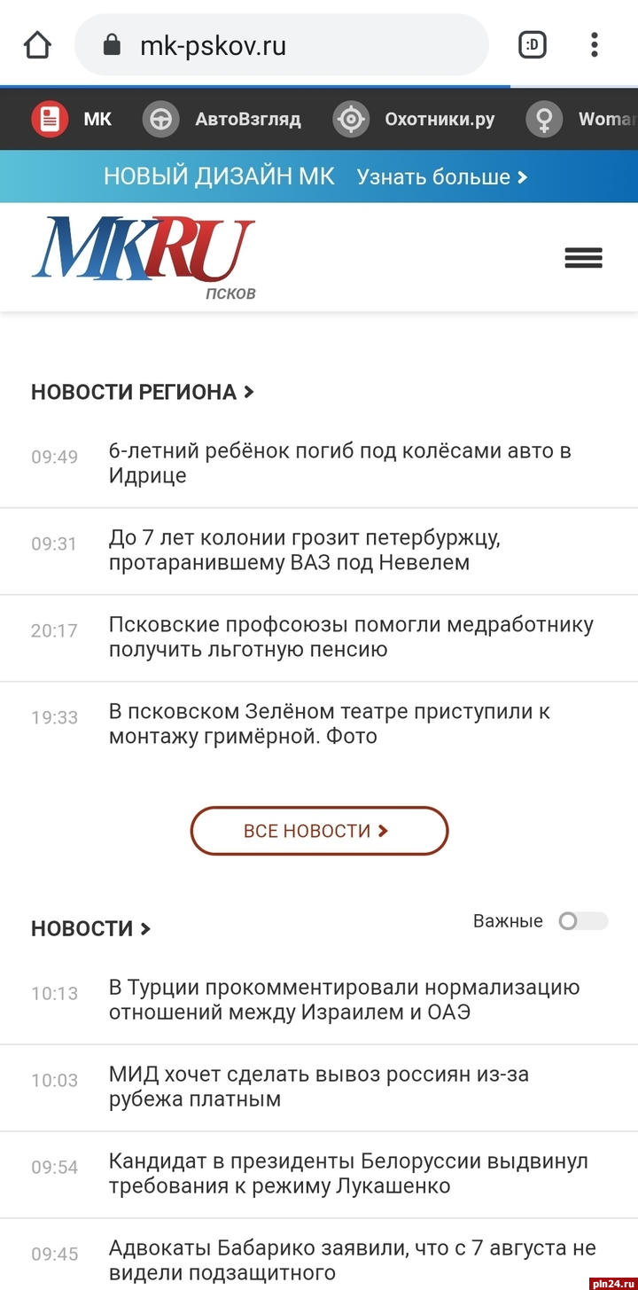 «Московский комсомолец» обновил сайт. Региональное издание «МК в Пскове» также перешел на обновленную площадку вечером 13 августа.