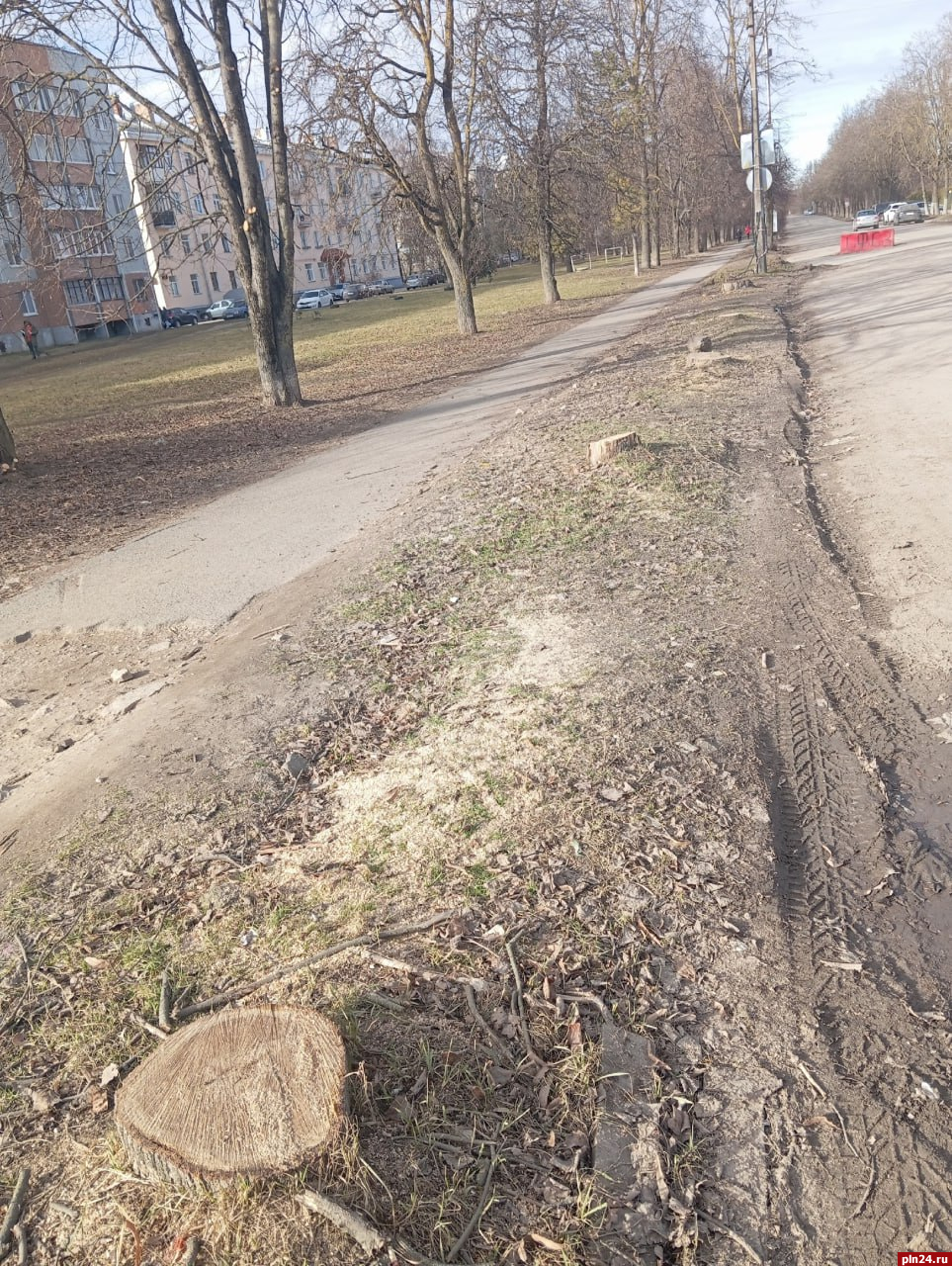 «Спилили аллею деревьев, превратив уютное место в ужасный пустырь с пеньками», - посетовала псковичка и отметила, что в прошлом году также спилили деревья около ресторана и бизнес-центра неподалеку.