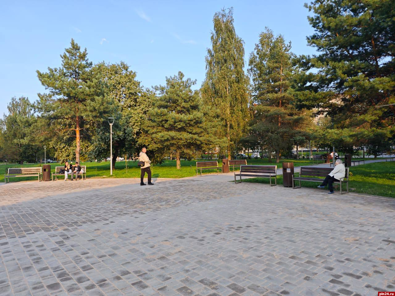 Новую тротуарную плитку закончили укладывать в сквере Пограничников в Пскове, сообщается в Telegram-канале главы города Бориса Елкина.