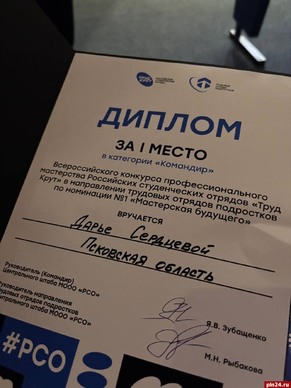 Итоги Всероссийского конкурса профессионального мастерства среди командиров трудовых отрядов подростков подвели 7 сентября, сообщается на странице начальника отдела трудового воспитания и профориентации Псковского городского молодежного центра Александра Косаржевского в соцсети «ВКонтакте».