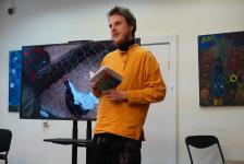 Ярослав также принёс в библиотеку созданную им самим рукописную книгу со стихотворениями в стиле Велимира Хлебникова и прочёл некоторые из них – например, про колбасу, которая пыталась править миром. Он также признался, что заключённое в рамку рукописное стихотворение рядом с картиной «Председатели земного шара» – это его творческий манифест.