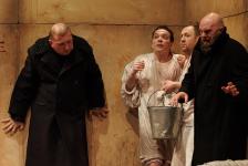 В спектакле «Ревизор» режиссер исследует тему пустоты и ее природы на примере одной из самых знаменитых пьес Гоголя и пытается найти новый язык для разговора на знакомую каждому тему. Хлестаков в исполнении артиста труппы Театра Вахтангова Максима Севриновского закручивает действие вокруг себя. Он единственный персонаж, наделенный человеческими чертами и вызывающий эмоциональный отклик. А еще одним, незримым, но важным персонажем спектакля неожиданно становится... выдающийся композитор Олег Каравайчук.
