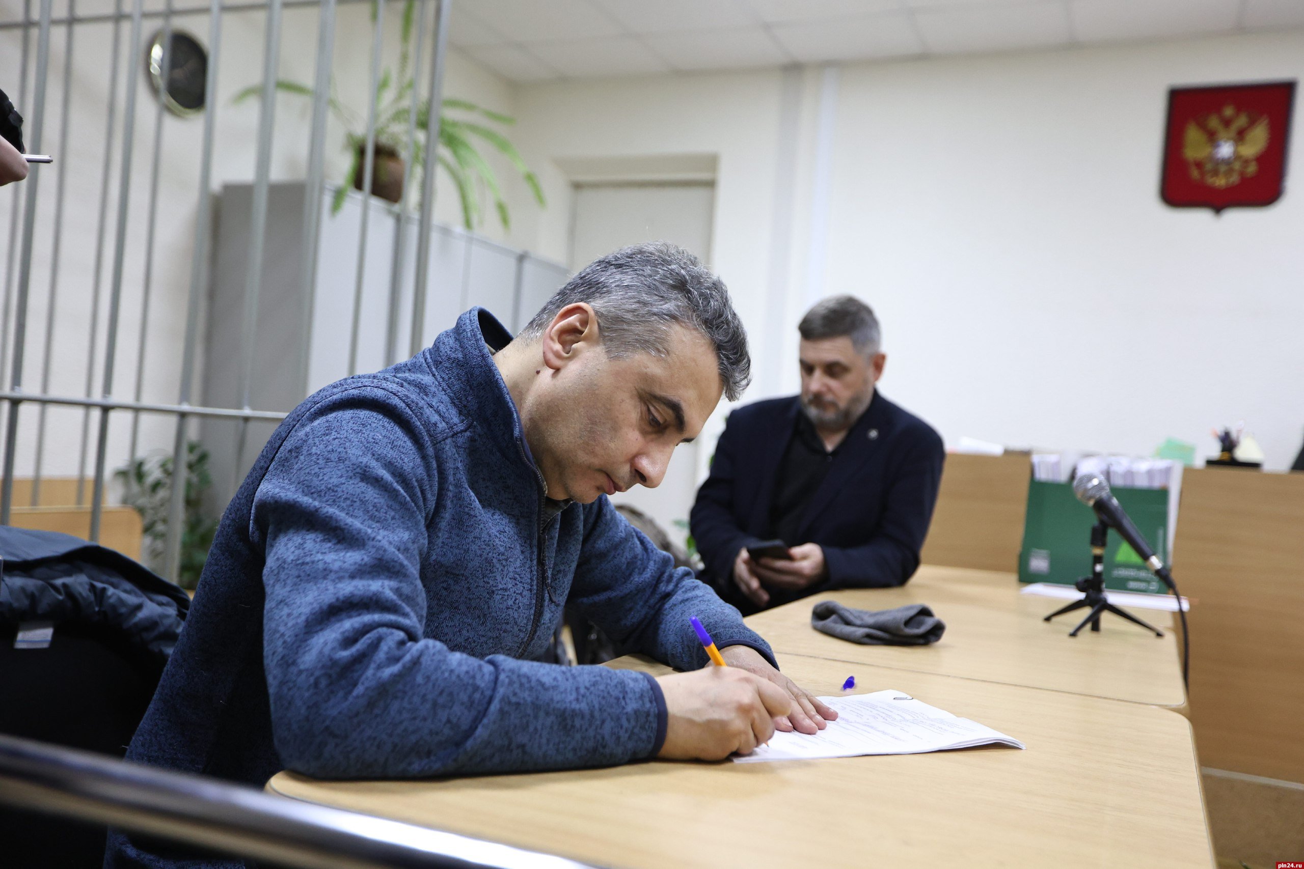 Суд удовлетворил ходатайство следователя СЧ СУ УМВД России по Псковской области. Зампредседателя взят под стражу в зале суда.