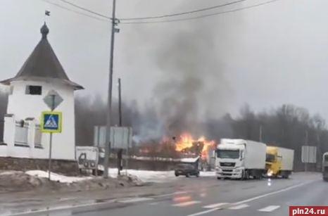 Возгорание здания в деревне Феофилова Пустынь Струго-Красненского предположительно произошло из-за неаккуратного обращения с огнём. Об этом Псковской Ленте Новостей сообщили в пресс-службе ГУ МЧС по Псковской области.