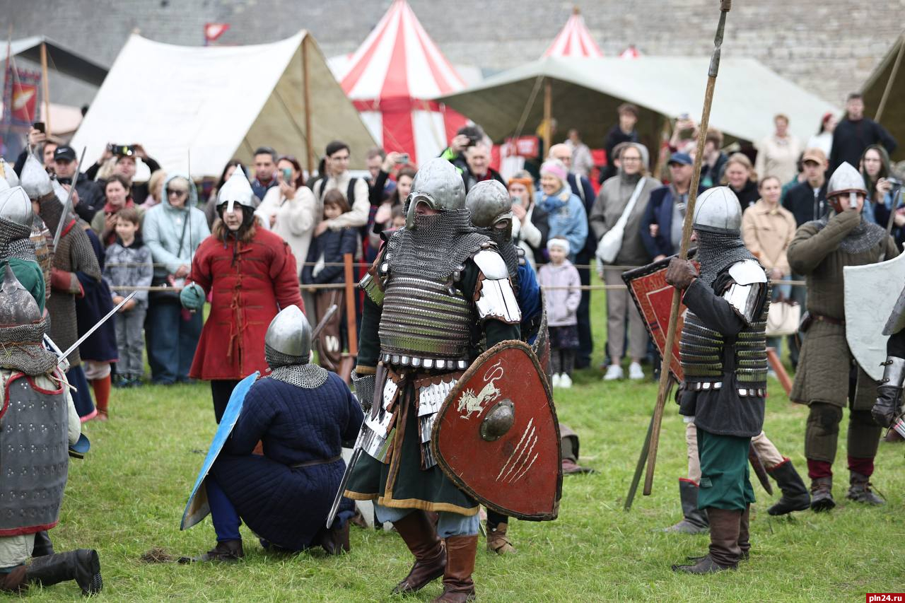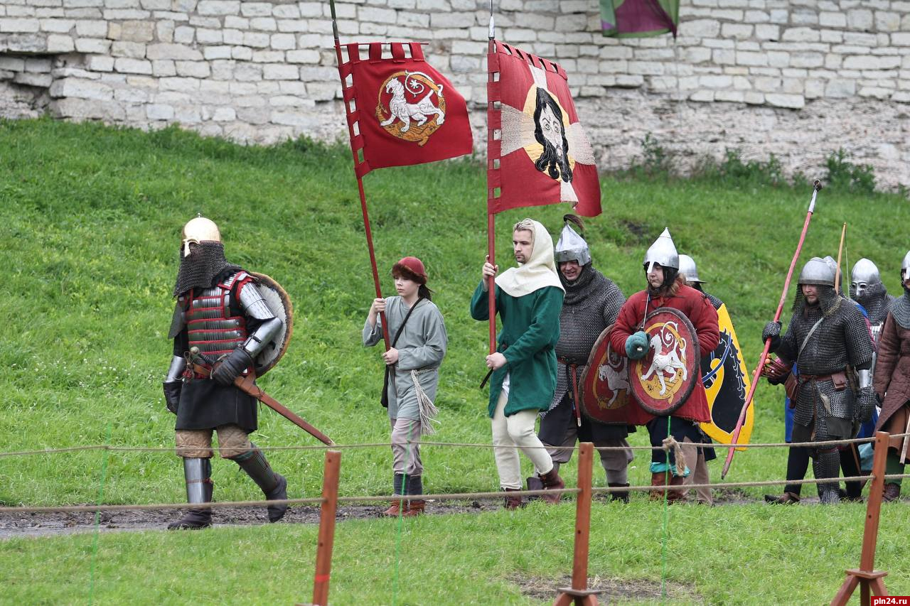 Бои реконструкторов стартовали на фестивале «Довмонт Псковский» в Псковском кремле 28 июня, передает корреспондент Псковской Ленты Новостей.