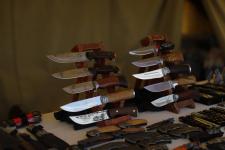 В Псковский район приехали представители различных производств и семейных хозяйств. В подарок и для себя псковичи и гости региона могут приобрести ножи, керамику и изделия из кожи.