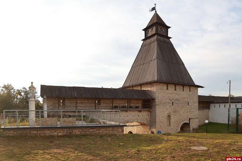 Сохранился спуск к реке. Правда, почти всю площадь фотографии занимает восстановленная Власьевская башня. Выполняет она, конечно, не оборонительную функцию, а, скорее, развлекательную. В ней находятся ресторан и смотровая площадка. Взглянуть на Псков с высоты нынче можно с нескольких точек – и башня одна из них.
