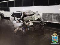 В результате ДТП водитель и пассажиры (мужчина 1990 года рождения и женщина 1986 года рождения) автомашины Hyundai скончались на месте ДТП. В автобусе никто не пострадал. На месте работали сотрудники Госавтоинспекции.