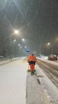 Специалисты с помощью техники, а также вручную убирают снег с проезжей части и тротуаров.