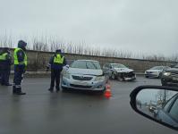 Служебная машина ГИБДД столкнулась с автомобилем Toyota, транспортные средства получили технические повреждения.