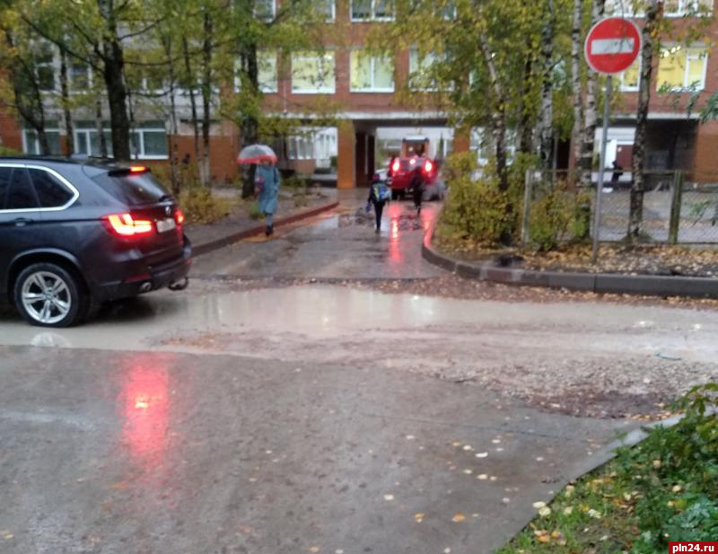 Водоотвод при ремонте дворовых проездов в Пскове не предусмотрен в принципе. И действительно, к чему эти буржуйские излишества в такой засушливой и никогда не видевшей влаги местности, как у нас? Может быть, проекты ремонтов копируют откуда-нибудь из Ташкента?