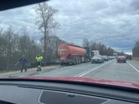 На трассе Псков-Остров, неподалеку от деревни Карпово, бензовозная фура съехала в кювет, передает корреспондент Псковской Ленты Новостей.