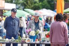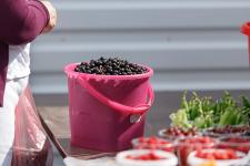 Все магазины местных производителей сосредоточены по пути в ту часть торговой площадки, что называют «дачным рынком». Сейчас там разгар сезона, буйство красок, услада для глаз и пир для желудка. Прямоугольником выстроен длинный стол, на котором перемежаются клубника, картошка, петрушка, вишня, огурцы, лисички, базилик, горошек и смородина. Основная активность приходится на время с половины девятого утра до часа дня. Знающие люди советуют приходить пораньше, пока не раскуплено все самое интересное.