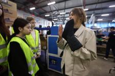 На старте экскурсии школьникам объяснили правила безопасности, так как на территории предприятия действует техника, в частности, погрузчики.