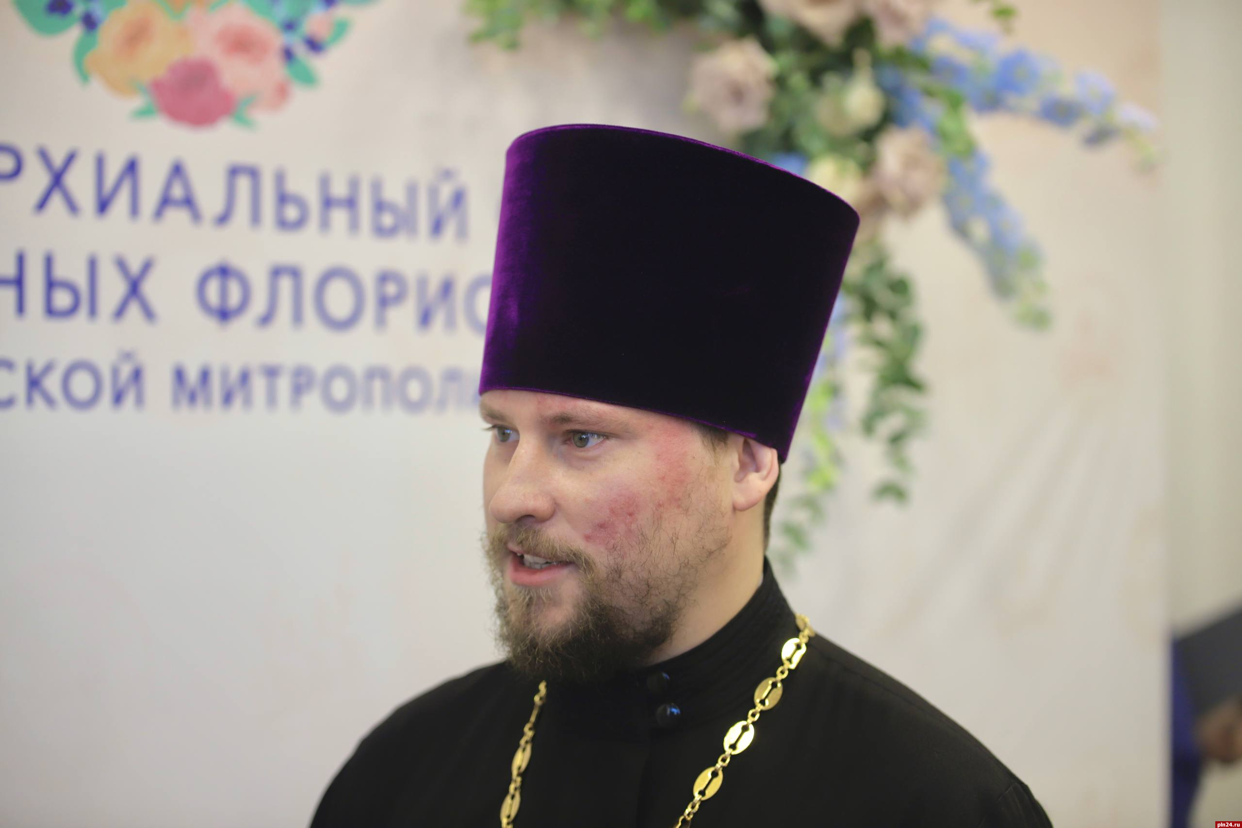 Но для красоты и изящества убранства храма мало одного желания и трудолюбия. Церковная флористика имеет традиции, основанные на знаниях о православных праздниках. Старший священник храма свв. Кирилла и Мефодия в паломническом центре Псково-Печерского монастыря, проректор по воспитательной работе Псково-Печерской духовной семинарии иерей Андрей Кичайкин пояснил, что каждому дню церковного календаря соответствует определенный цвет в храмовом убранстве и облачении священнослужителей.