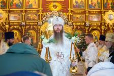 В ночь с 6 на 7 января епископ совершил Великое повечерие, Утреню и Божественную Литургию святителя Иоанна Златоуста. Ему сослужили настоятель собора и клирики. Праздничные песнопения исполнил Архиерейский хор под управлением Ольги Смольниковой. На богослужении присутствовали многочисленные прихожане, представители власти, монашествующие и паломники.