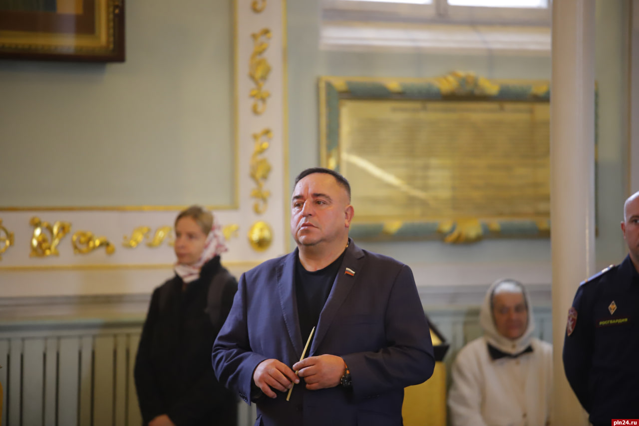 На священнослужении присутствовали депутат Псковского областного Собрания Алексей Севастьянов, сенатор Совета Федерации от Псковской области Наталья Мельникова, заместитель губернатора Псковской области Ольга Тимофеева, представители Федеральной службы судебных приставов, а также военнослужащие и родственники.