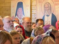 Освящение храма и первое богослужение совершили митрополит Псковский и Порховский Матфей и митрополит Звенигородский Арсений (Перевалов). После освящения храма службы будут проходить регулярно. Митрополит Матфей отметил, что позже на месте временного деревянного храма построят каменный храм, который сможет вместить в себя пятьсот человек, а рядом откроют воскресную школу.