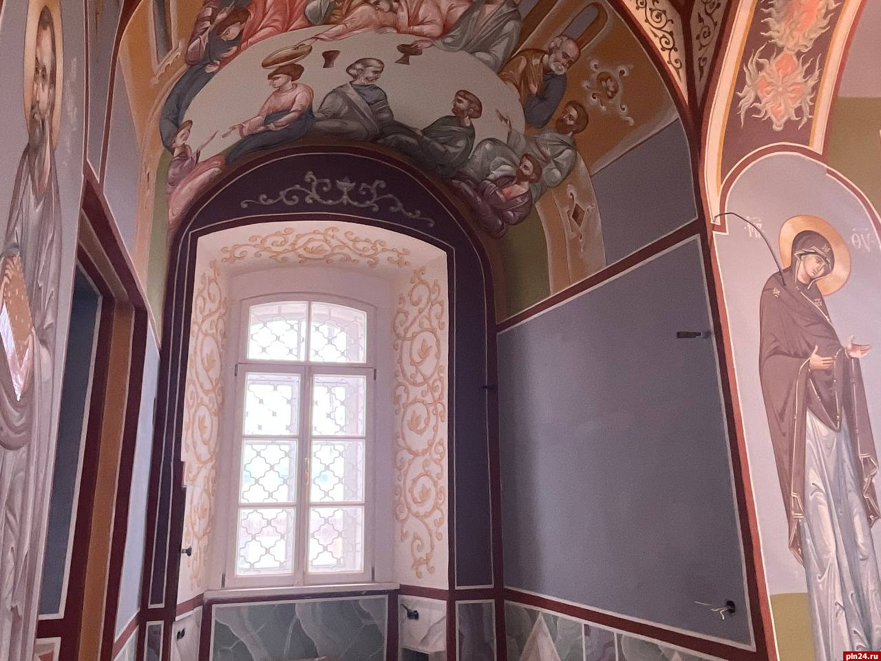 В церкви Сорока Севастийских мучеников в Печорах завершили реставрацию живописи и разобрали леса, сообщили в Telegram-канале «АНО «Возрождение объектов культурного наследия в г. Пскове».