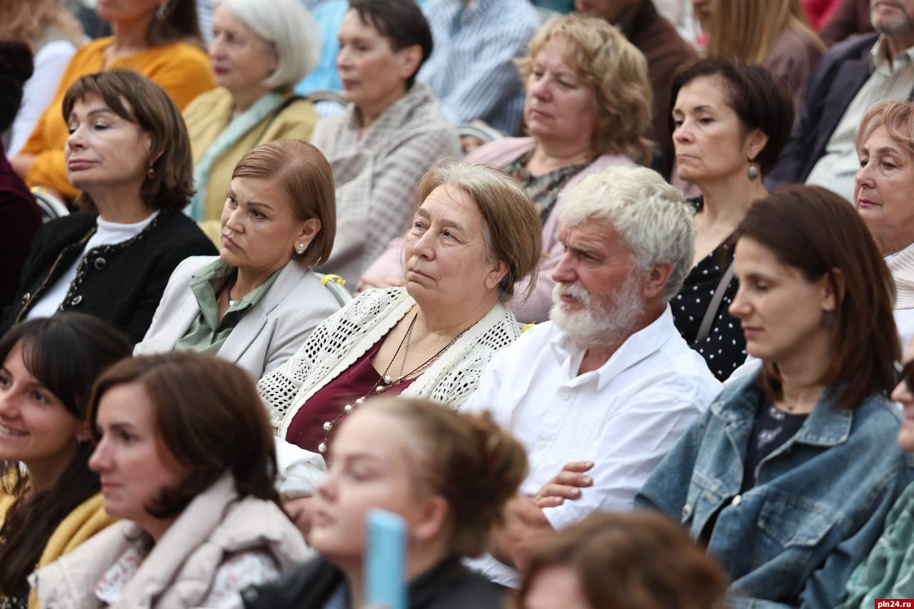 Площадка с видом на древнюю Покровскую башню в пятничный вечер превратилась в пространство красоты и уюта, которое постепенно заполняли нарядные гости. Для многих псковичей музыкальные вечера в «Покровском» — не просто культурное событие. Это возможность насладиться непринужденным общением, звучанием любимых музыкальных произведений и образами, которые искусно создают на сцене исполнители.