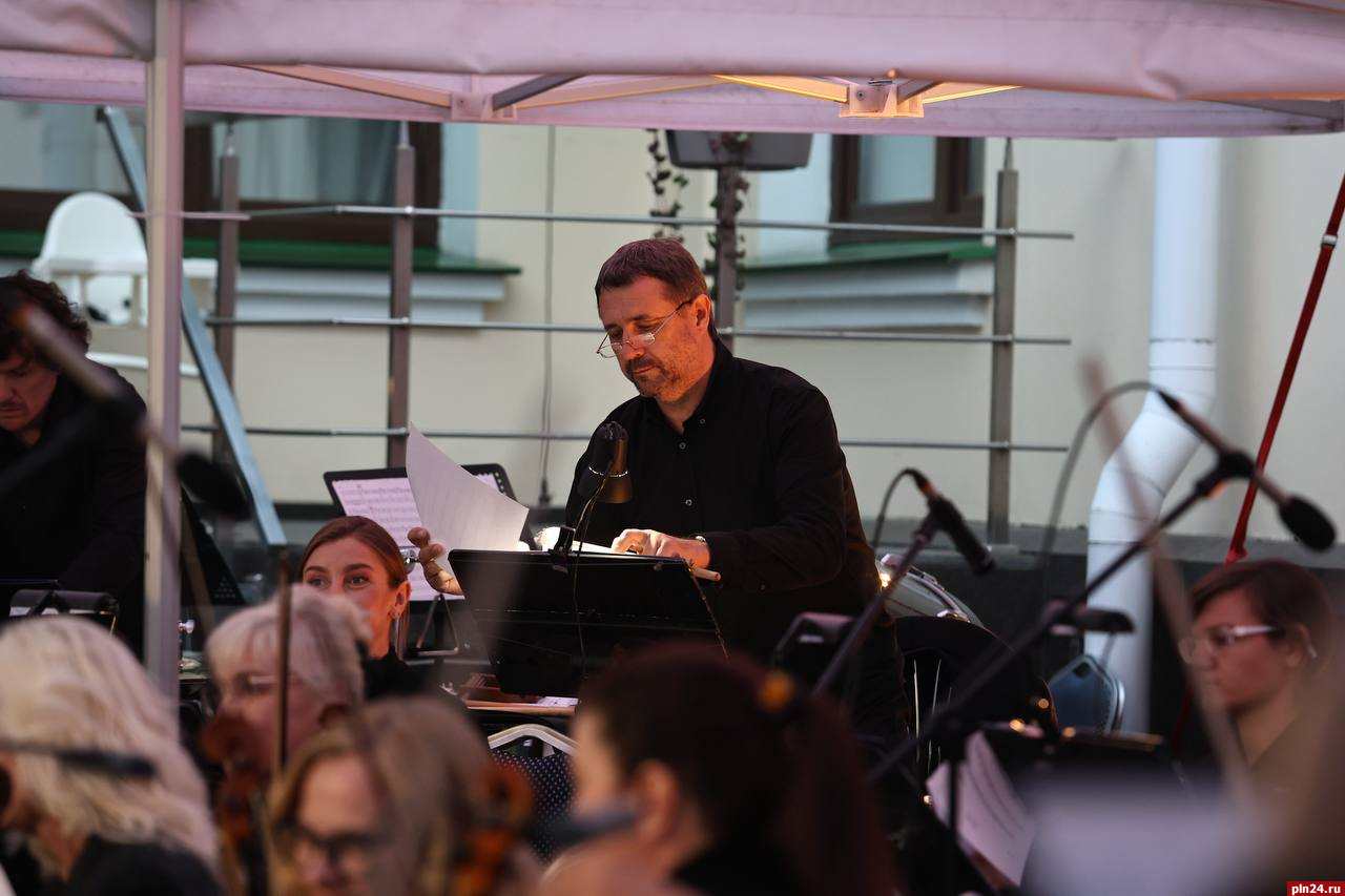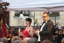 В этот раз любителей прекрасного ждало музыкальное путешествие сквозь страны и века — от изысканных произведений европейских композиторов XIX века до не менее красивых мелодий современности. Под открытым небом прозвучали арии, дуэты, симфонические фрагменты из опер и оперетт, а также песни, ставшие классикой, в исполнении Губернаторского симфонического оркестра Псковской области и солистов Мариинского театра - Ольги Пудовой (сопрано) и Дениса Беганского (бас).