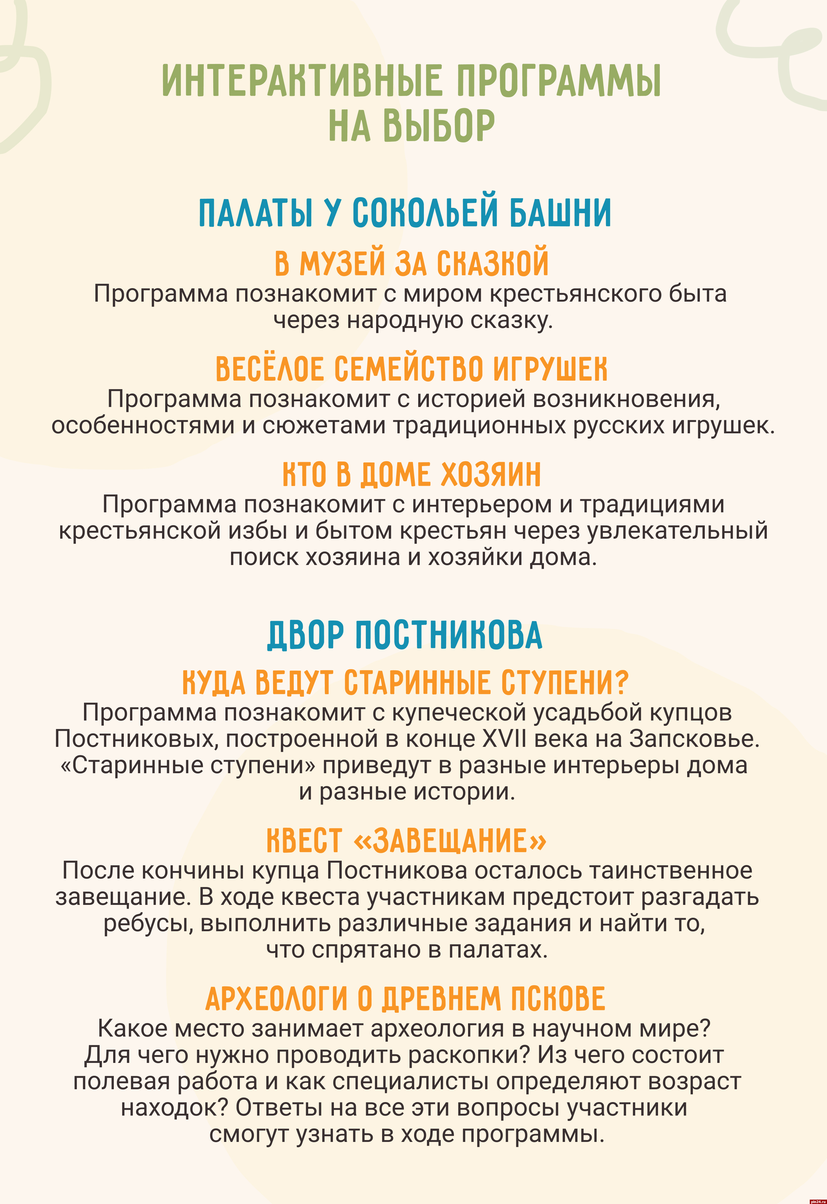 Псковский музей-заповедник предлагает провести самый важный день в году с пользой для ума и хорошего настроения, погрузившись в русскую традиционную культуру, увлекательную науку или детективное историческое расследование. Об этом Псковской Ленте Новостей сообщили в музее.