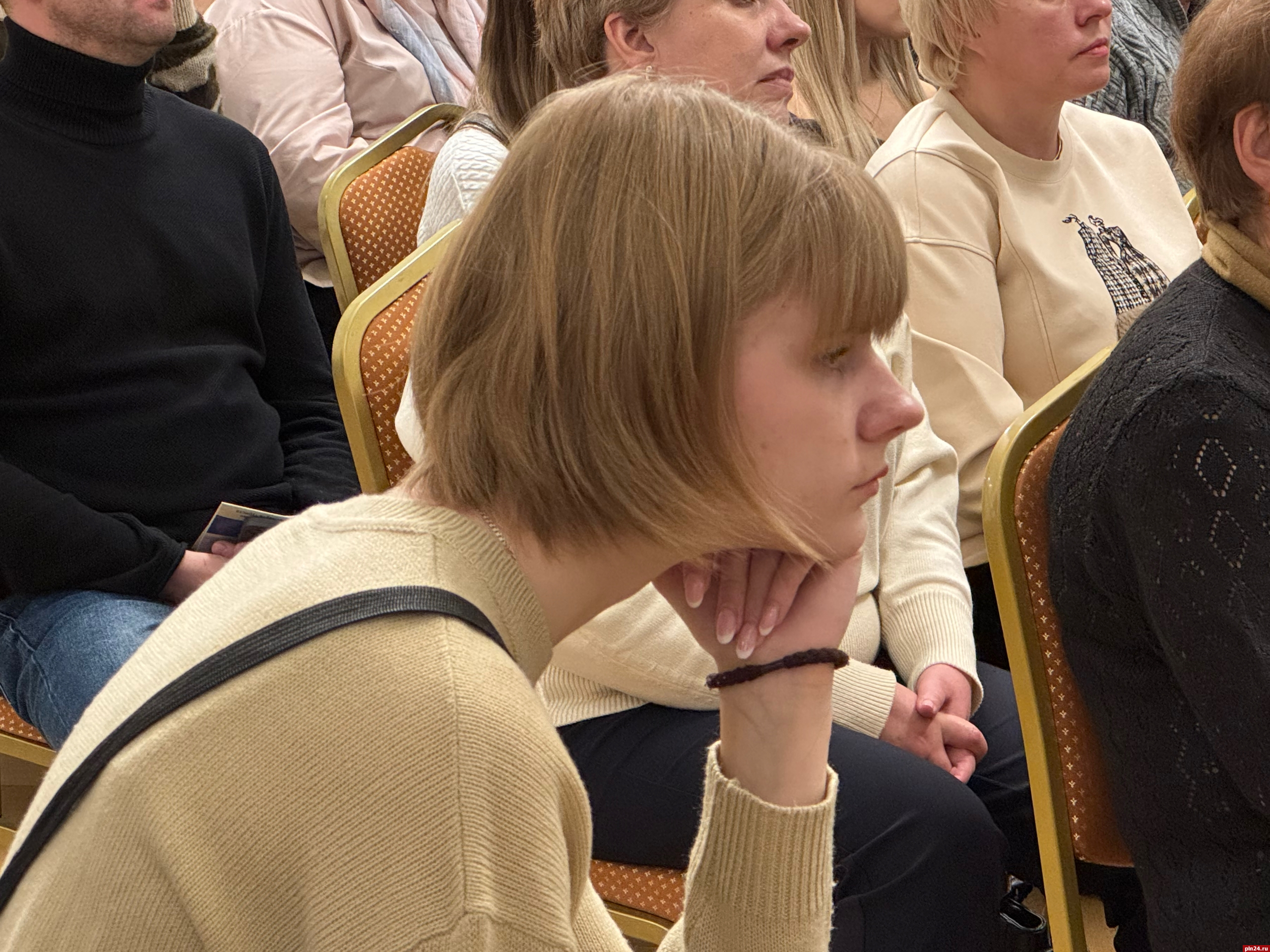 Гости из разных городов России подпевают под знакомые каждому композиции и одаривают гостью аплодисментами. Концерт выступает завершением «Ночи искусств» в псковском музее.