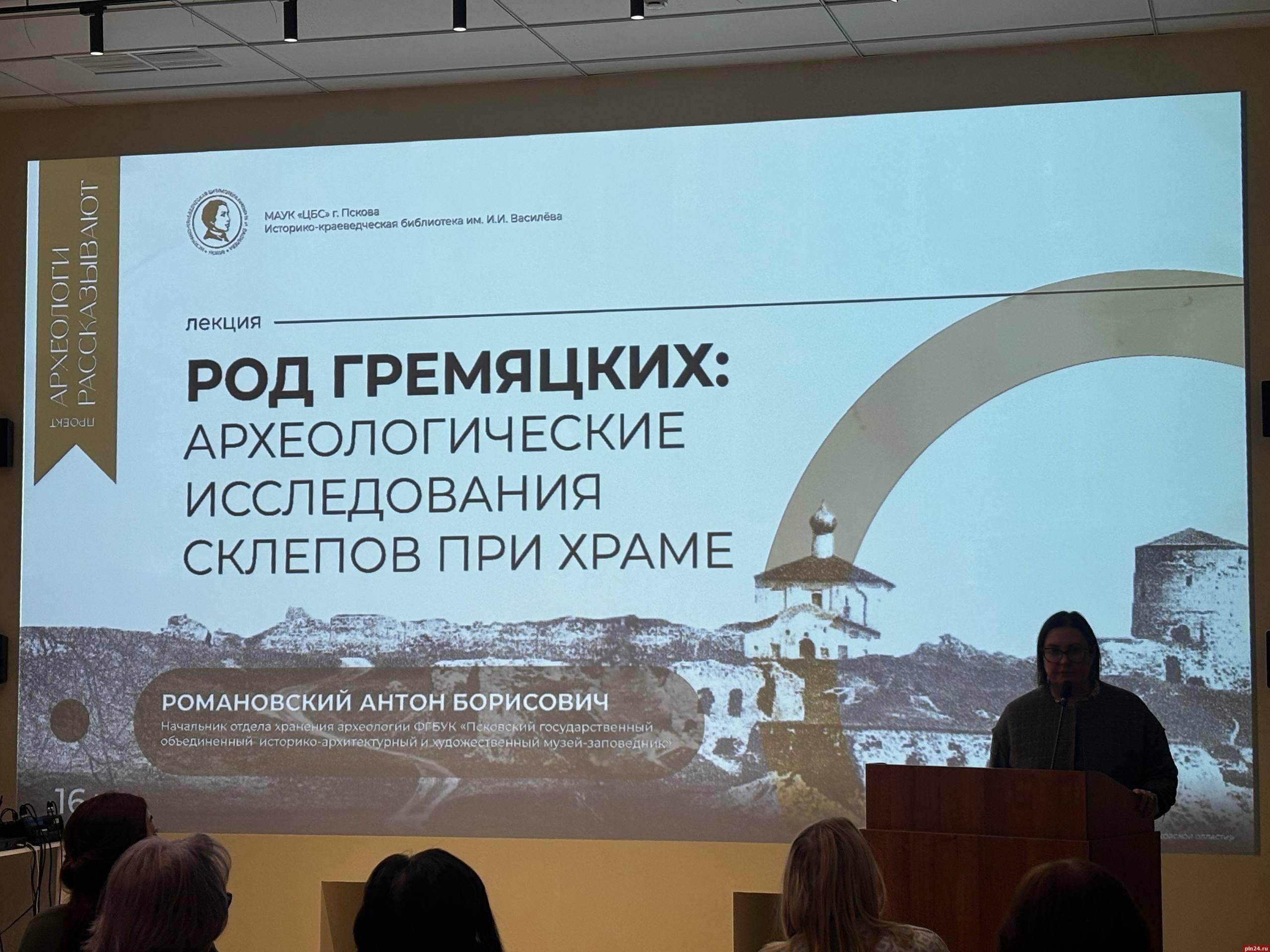 В историко-краеведческой библиотеке имени Ивана Василева 20 января прошла лекция, посвященная результатам археологических исследований родового склепа Гремяцких. Мероприятие состоялось в рамках ежемесячного просветительского проекта «Археологи рассказывают», передает корреспондент Псковской Ленты Новостей.
