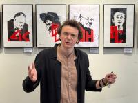Актёры Денис Кугай, Александр Овчаренко и Максим Плеханов поделились с гостями мероприятия своими театральными историями и даже внесли коррективы в портреты, взяв в руки маркеры, клей и дерзко дополнив картины характерными для некоторых артистов деталями.