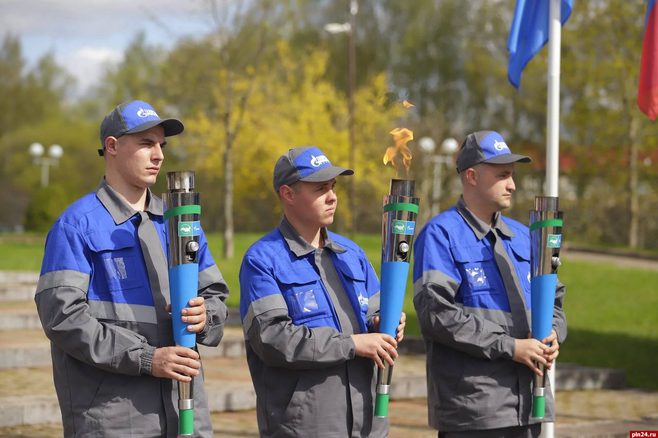 Символические факелы зажгли жители поселка Геннадий Обоенков, Людмила Фёдорова, Владимир Тимофеев.
