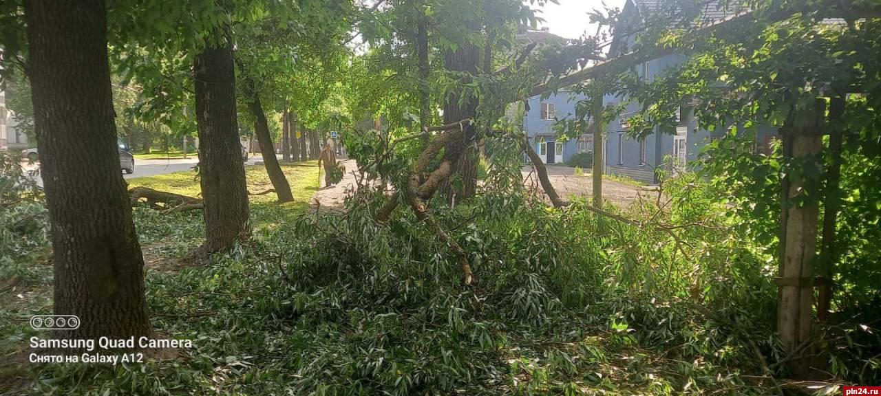 По всей Псковской области прошел шквалистый ветер, сопровождающийся сильным дождем, что привело к повалу деревьев в некоторых районах и обрыву проводов.