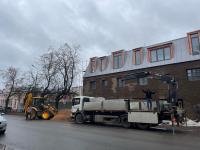 Строители выгрузили свои материалы так, что они оказались на проезжей части.