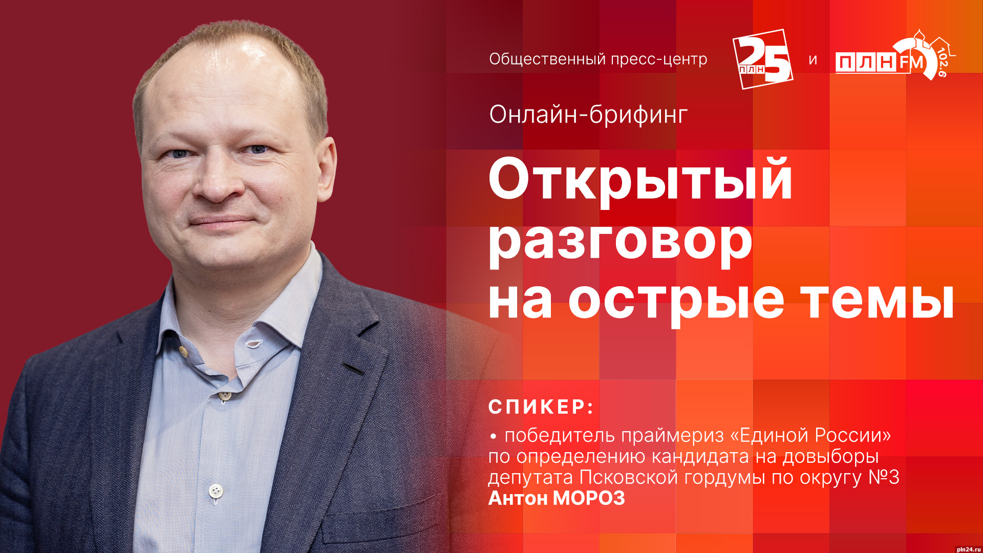 Победитель предварительного голосования «Единой России» по определению кандидата на довыборы депутата Псковской городской Думы по округу №3 Антон Мороз проведет большую пресс-конференцию для псковских журналистов. Площадкой для его первой масштабной встречи с представителями СМИ станет объединенный пресс-центр Псковской Ленты Новостей и радиостанции «ПЛН FM».