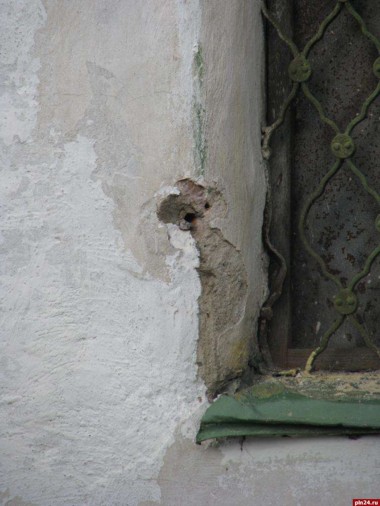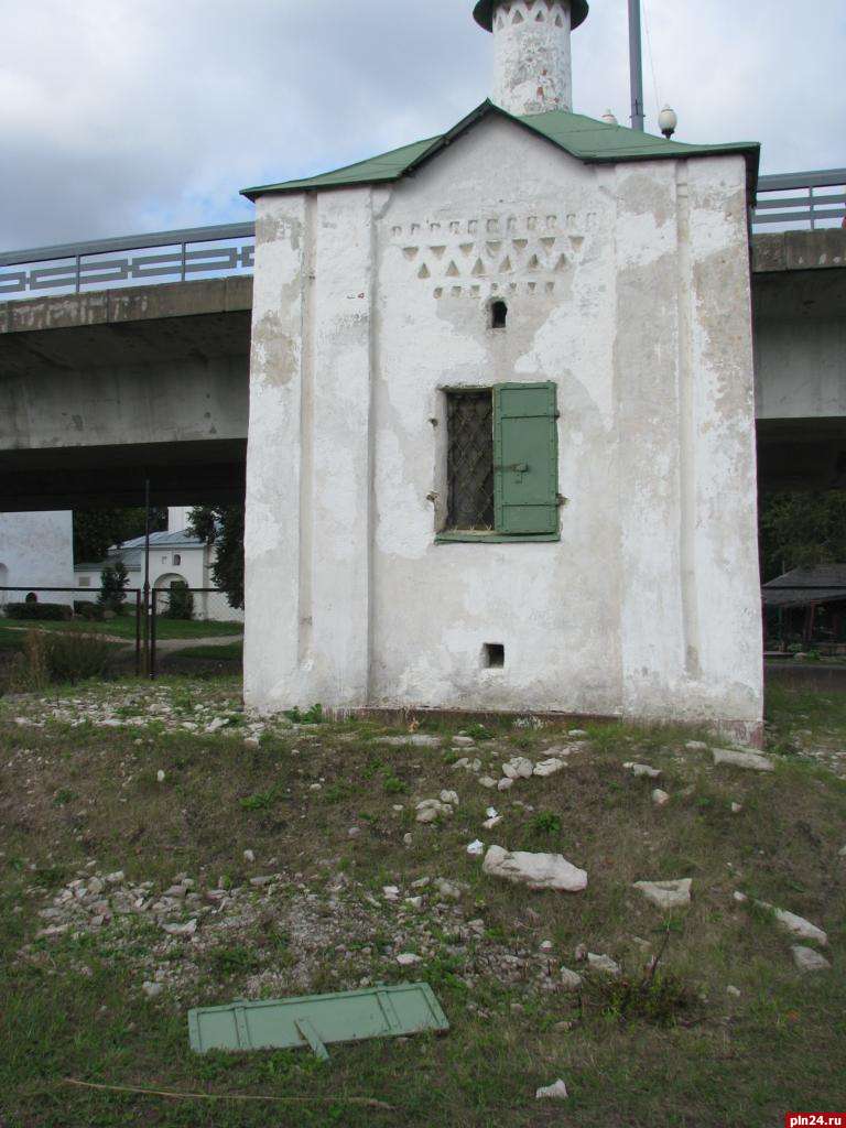Акт вандализма совершен в отношении Анастасьевской часовни в Пскове. У южного окна часовни выдернута створка.