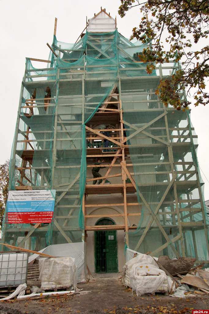 В церкви Николы со Усохи в Пскове приступили к монтажу напольного покрытия
