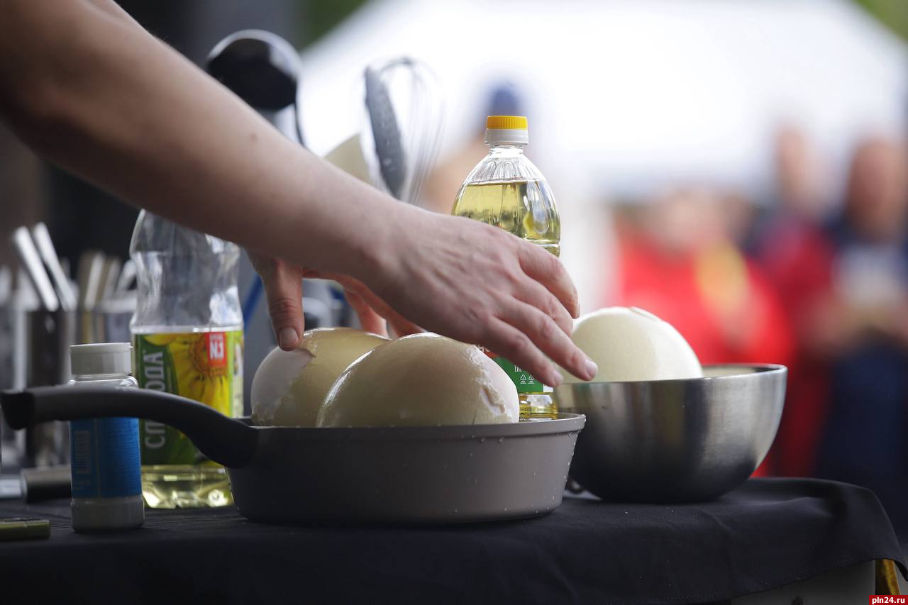 Интерактив по приготовлению яичницы из страусиных яиц состоялся в рамках открытого гастрономического фестиваля «Моя еда» в парке Строителей в Пскове 25 мая, передает корреспондент Псковской Ленты Новостей.