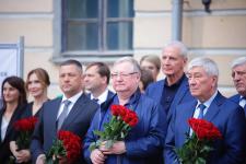 В церемонии приняли участие губернатор Псковской области Михаил Ведерников, председатель благотворительного фонда «Христианское милосердие», председатель Международной общественной организации «Императорское православное палестинское общество» Сергей Степашин, директор Федеральной службы по финансовому мониторингу, член Попечительского совета благотворительного фонда «Христианское милосердие» Юрий Чиханчин, председатель Псковского областного Собрания депутатов Александр Котов, вице-губернатор Псковской области Ольга Тимофеева, сенатор Российской Федерации Алексей Наумец. В рамках открытия к памятнику возложили цветы.