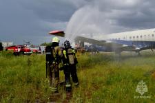 По замыслу учений, при выполнении посадки самолета произошло выкатывание за пределы взлетно-посадочной полосы. В результате воздушное судно остановилось на грунте, вследствие чего произошло разрушение правого двигателя с разливом и возгоранием авиатоплива.
