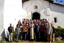 Настоятель храма Богоявления Господня на Запсковье протоиерей Виктор Кулев, проводивший благодарственный молебен, вручил в подарок руководителю Главного управления МЧС России по Псковской области Сергею Лаврухину икону с благословением от митрополита Псковского и Порховского Тихона.