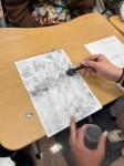 Также ребят ознакомили с предметами, находящимися в криминалистическом чемодане. Они на практике помогли попробовать произвести дактилоскопирование с помощью черной краски и валика, перенеся информацию, а именно след пальца руки, на дактилоскопическую карту.