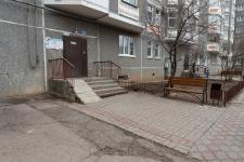 Дворовая территория возле дома - в идеальном порядке. Возле подъездов установлены скамеечки, за небольшим ограждением весной будут посажены цветы. Силами жильцов расчищена территория и высажены туи и гортензии.
