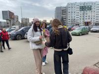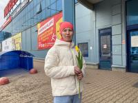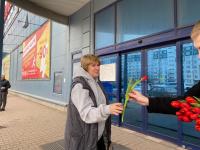 Молодежный центр дарил цветы возле ТЦ «Империал» в Пскове