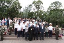 Параллельно с церемонией возложения гирлянды воинской славы и цветов к мемориалу «Могила неизвестного солдата»военнослужащие 76-й десантно-штурмовой Черниговской Краснознаменной ордена Суворова дивизии возложили гирлянду к памятной стеле «Город воинской славы».