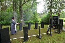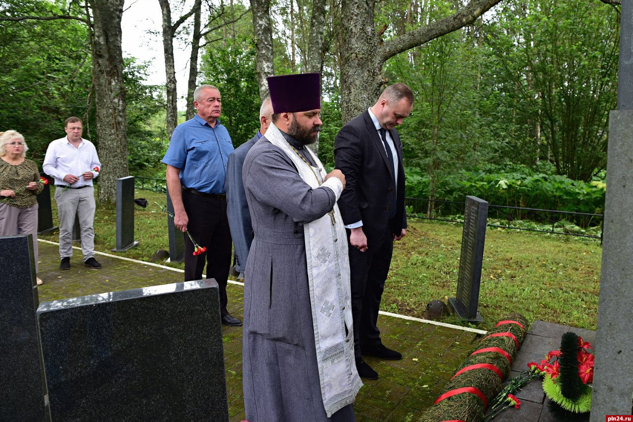 После поминальной литии, которую отслужил настоятель собора Святой Троицы города Острова протоиерей Роман Павлов, и «минуты молчания» участники памятного мероприятия возложили к памятнику гирлянду и живые цветы.